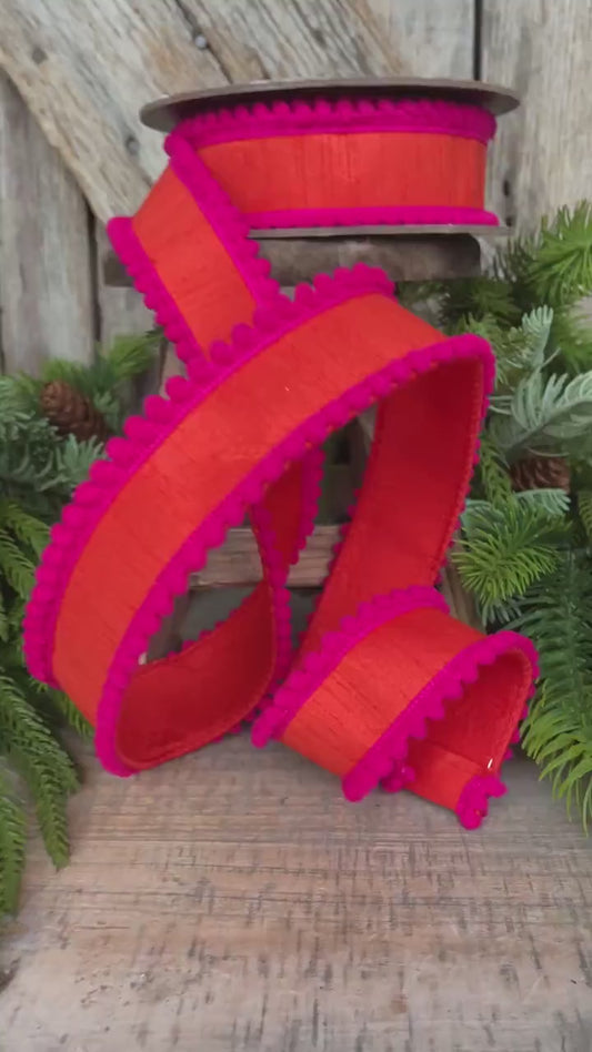 1.5" Orange Hot Pink Ribbon, Wired Ribbon, Designer Ribbon
