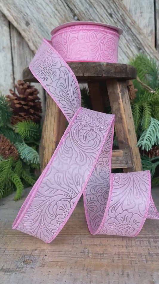 1.5" Light Pink Embossed Ribbon, Pink Ribbon, Christmas Ribbon