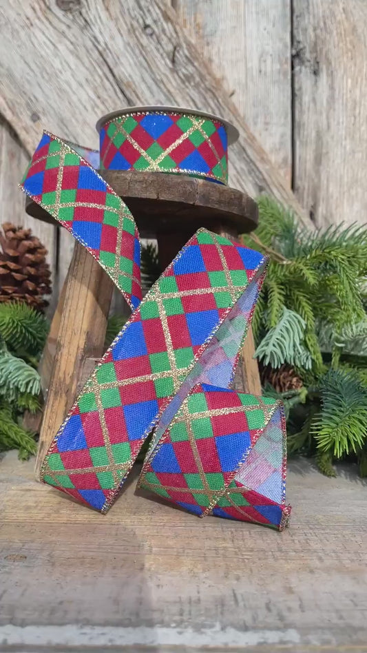 1.5" Blue Christmas Plaid Ribbon, Red Blue Green Gold Georgina Plaid Ribbon, Christmas plaid Ribbon