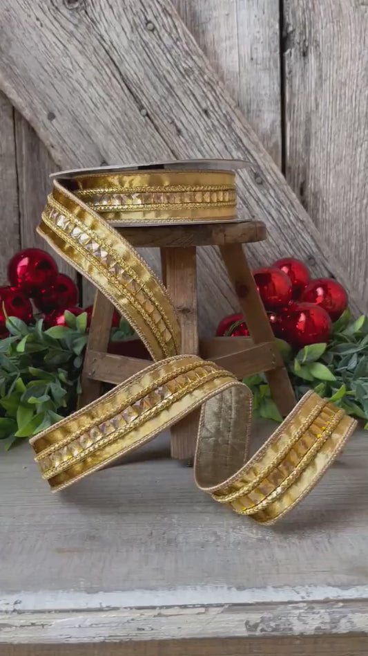 1.5" Gold Gemstones, Farrisilk, Gold Jeweled RIbbon