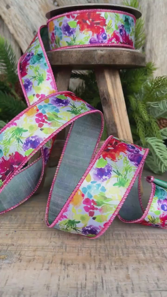 1.5" Floral Ribbon, wired Ribbon, Spring Ribbon