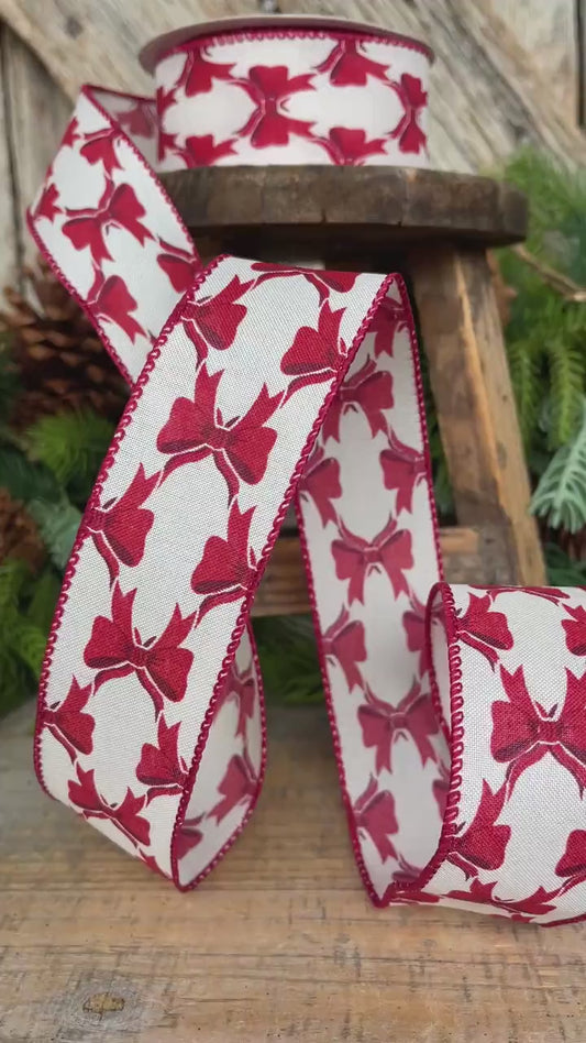 1.5" Coquette Red Bow Ribbon, Red Bow Ribbon, Red Christmas Ribbon
