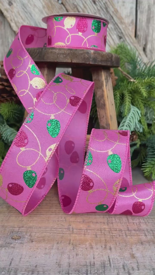 1.5" Pink Christmas Ribbon, Christmas Lights Ribbon, Bubblegum Pink Ribbon