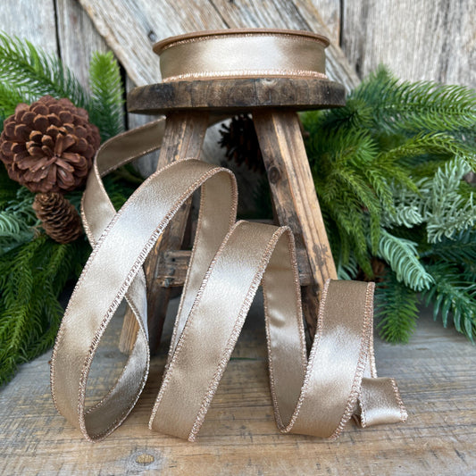 1" Champagne Gold Satin Ribbon, Christmas Ribbon, Shimmer Satin Ribbon