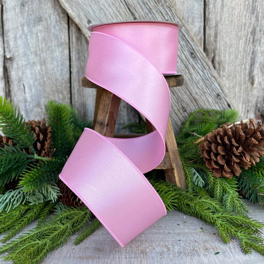 2.5" Light Pink Wired Satin Ribbon, Farrisilk Ribbon, Satin Ribbon