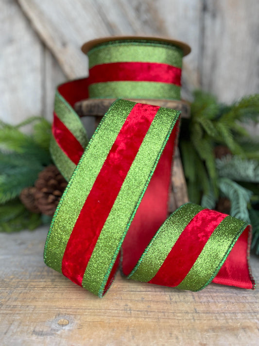 2.5" Red & Lime Green Velvet Ribbon, Whimsical Christmas Ribbon