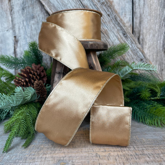 2.5" Gold Satin Ribbon, Christmas Ribbon, Shimmer Satin Ribbon