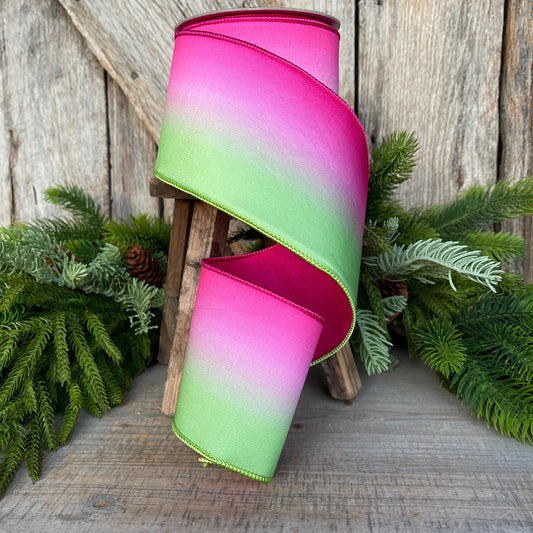 4" Pink Lime Green Vibrant Horizon Ribbon, Farrisilk RIbbon, Wired RIbbon