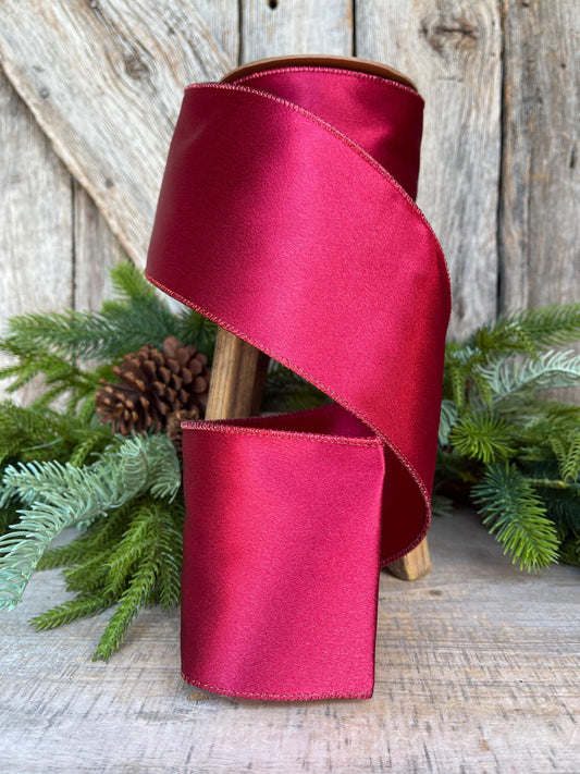 4" Wine Burgundy Ribbon, Christmas Ribbon, Shimmer Ribbon