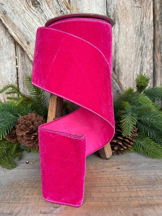 4" Hot Pink Velvet Ribbon, Christmas Ribbon, Hot Pink Ribbon for Christmas Tree
