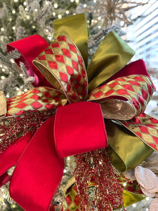 4" Red and Green Harlequin Velvet Ribbon, Christmas Ribbon, Harlequin Ribbon