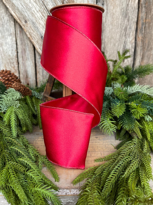 4" Red Shimmer Ribbon, Christmas Ribbon, Red Christmas Ribbon