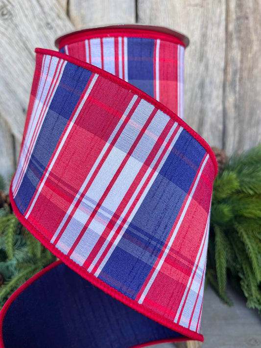 4" Patriotic Plaid Ribbon, Farrisilk Ribbon, Hampton Plaid