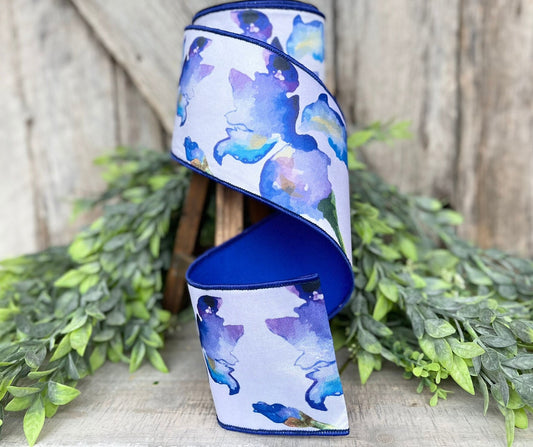 4" Iris Floral Ribbon, Farrisilk Ribbon, Wired RIbbon