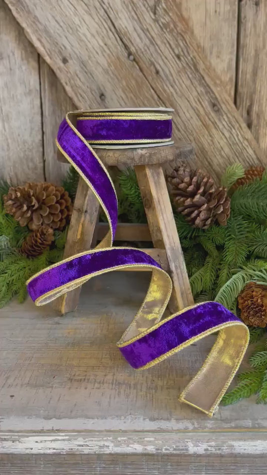 1" Purple Velvet Ribbon, Royal Purple Ribbon, Wired Ribbon