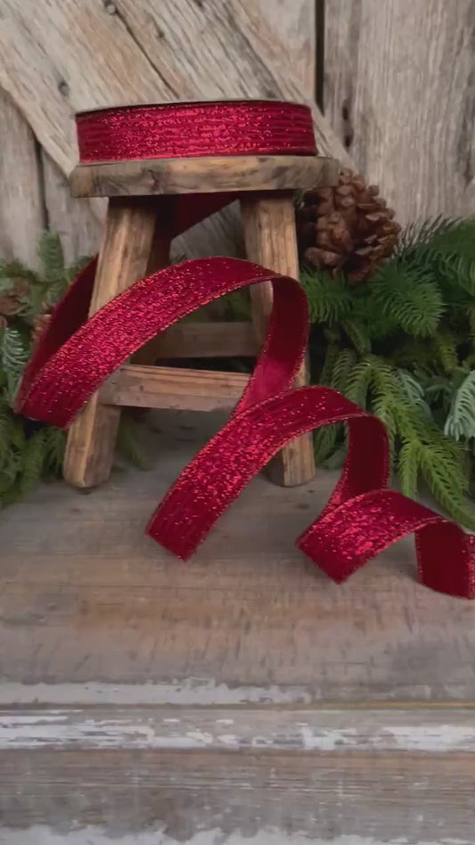 1" Red Plush Velvet RIbbon, Wired Ribbon, Red Velvet Ribbon