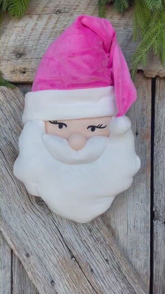 15" Pink Santa Ornament, Pink Santa Wreath Attachment, Plush Pink Santa Head