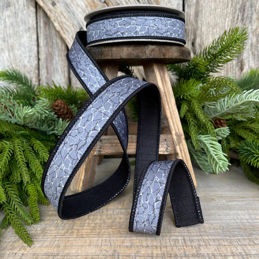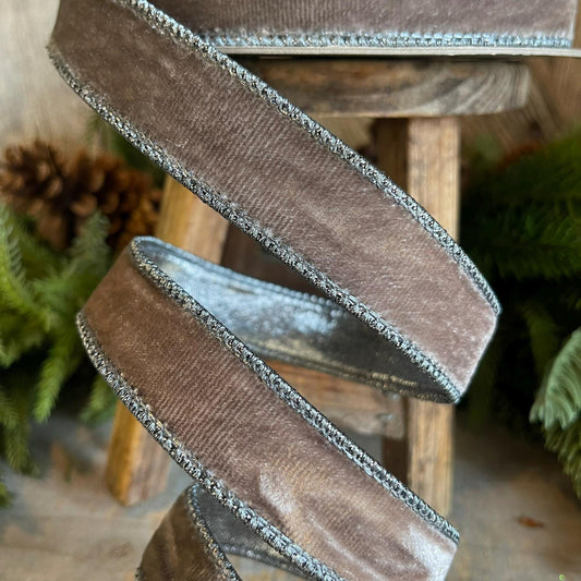 1" Gray Velvet Wired Ribbon, Steel Gray Ribbon, Velvet Ribbon