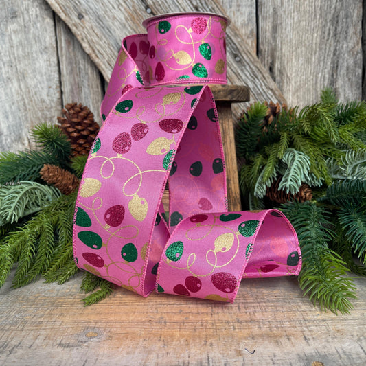2.5" Pink Christmas Ribbon, Christmas Lights Ribbon, Bubblegum Pink Ribbon