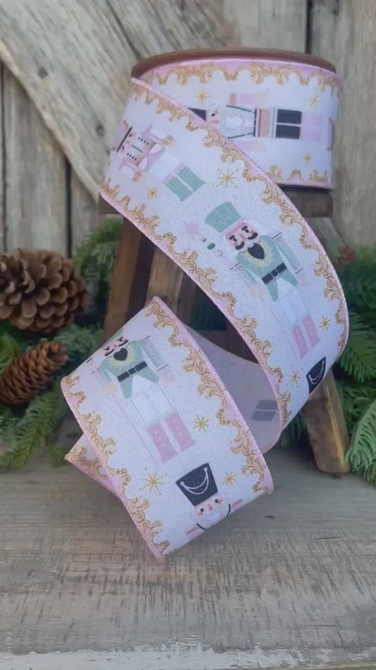2.5" Pink Nutcracker Ribbon, Pink Ribbon, Pink christmas Ribbon