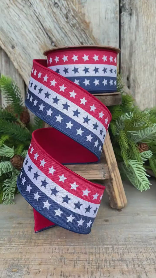 2.5" Patriotic Wired Ribbon, Stars and Stripe Ribbon, American Ribbon