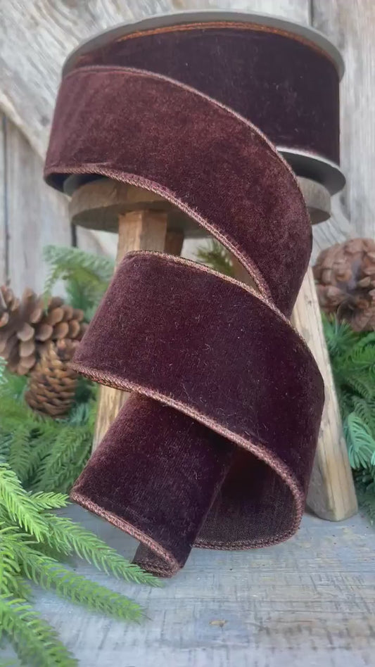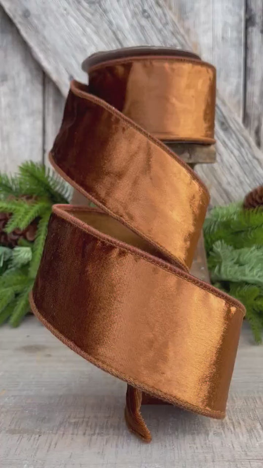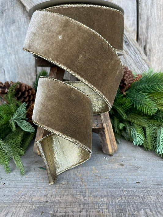 2.5” Bronze Wired Velvet Ribbon, Wired ribbon, Woodsy ribbon