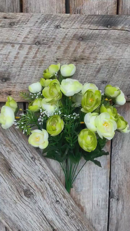 20" Green Ranunculus Floral Bush, Artificial Ranunculus Bush, Floral Bush