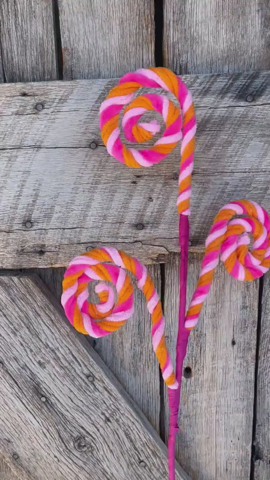 20" Pink Orange Stripe Spiral Curly Spray, Easter Decor, Wreath Spray