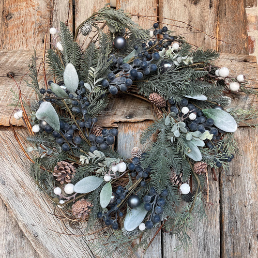 24" Christmas Blueberry Wreath, Christmas Wreath, Blueberry Winter Wreath