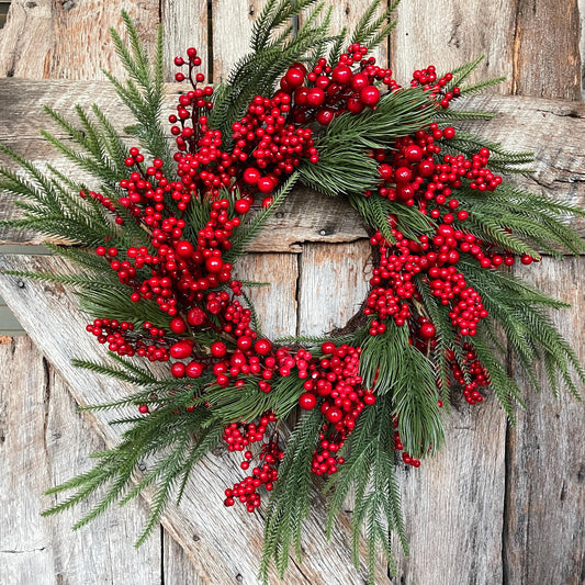 24" Christmas Red Berry Wreath, Cranberry Wreath, Red Wreath