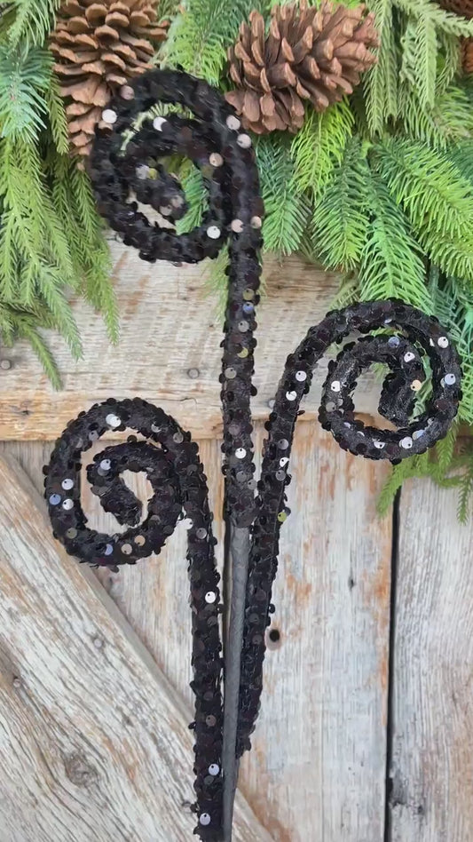 29" Black Sequin Curly Spray, Halloween Spray, Floral Spray