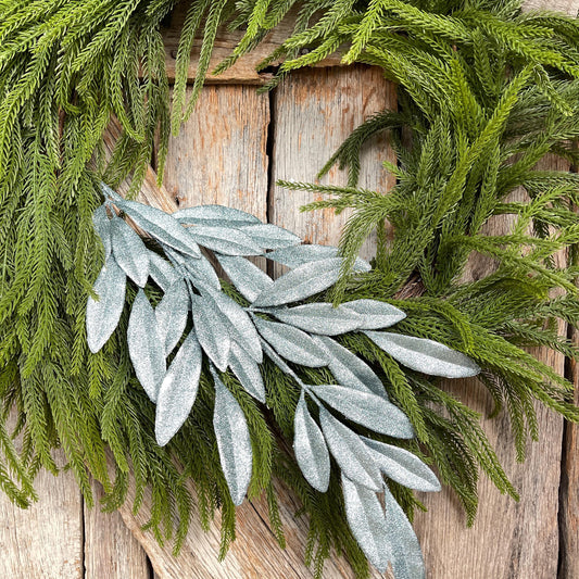 Light Blue Glitter Laurel Leaf Spray: Christmas Tree Pick (27")