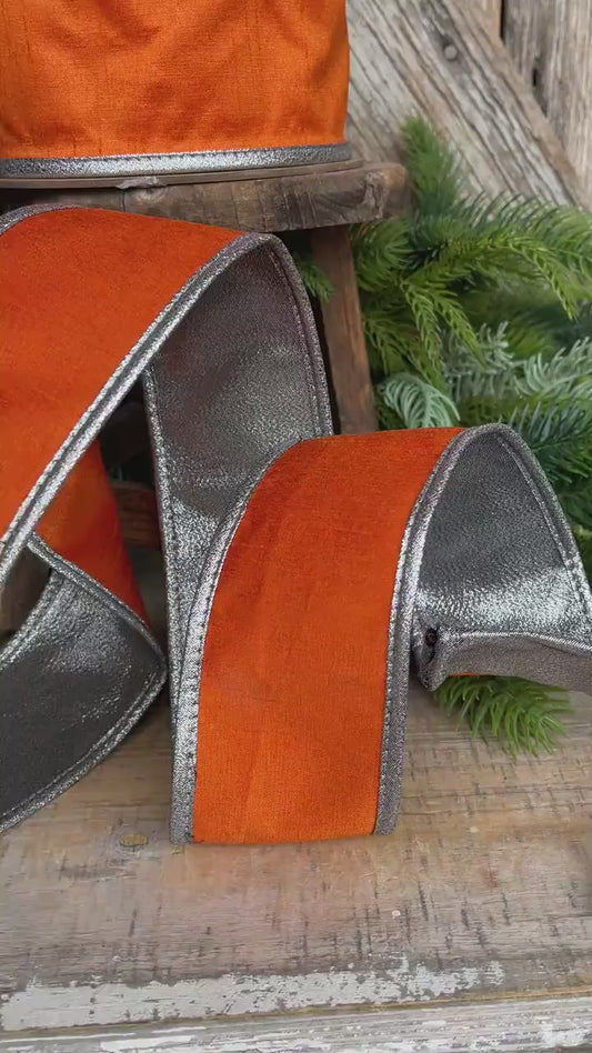 Orange Silver Wired Ribbon: 2.5" Halloween Decor, 10 Yards