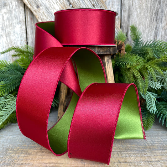 Ruby Green Wired Satin Christmas Ribbon: Farrisilk 2.5" x 10yds