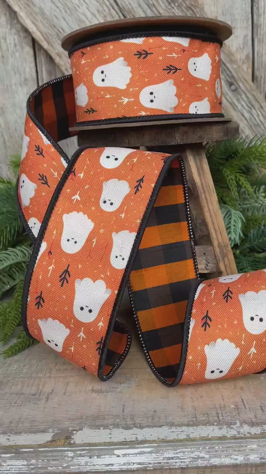 Vintage Halloween Ghost Ribbon - 2.5" Wired Edge