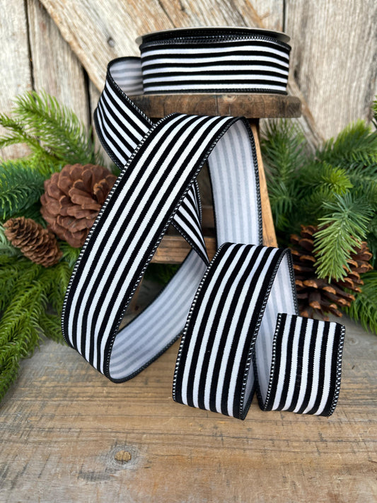 1.5" Black White Stripes Ribbon, Farrisilk Ribbon, Designer Ribbon