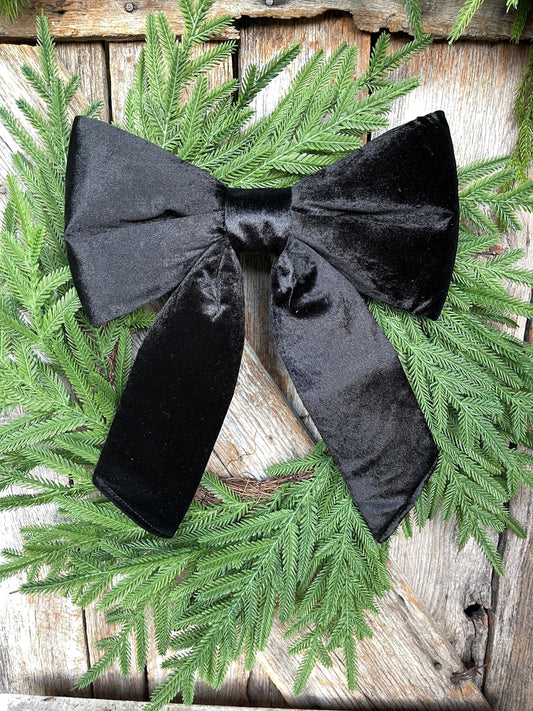 12" x 16" Black Velvet Bow, Black Christmas Bow, Velvet Bow