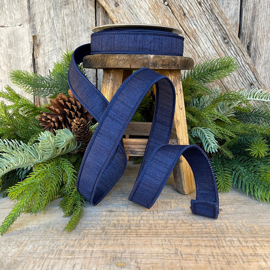 1" Navy Blue Ribbon, Dark Blue Ribbon, Blue Dupion Ribbon