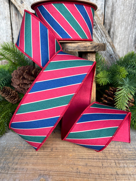 Red Green Blue Striped Christmas Ribbon: Wired Edge, 2.5" x 10 yds