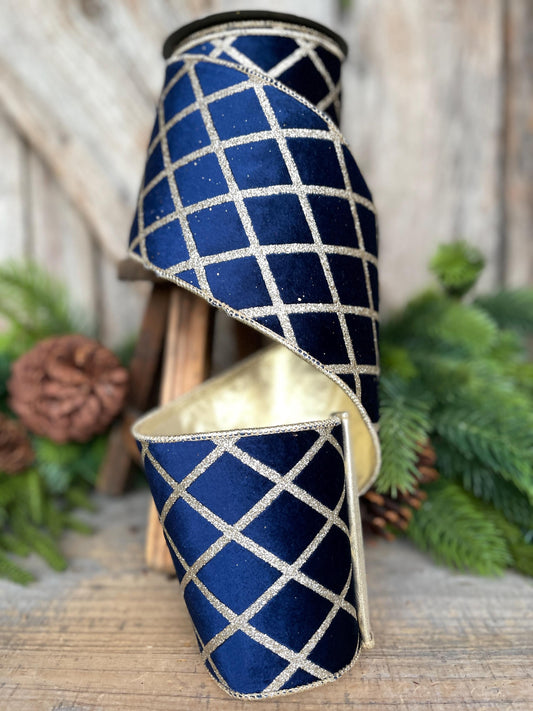 Navy Blue Gold Lattice Ribbon, Navy Blue Gold Lattice Ribbon Christmas Tree & Holiday Decor
