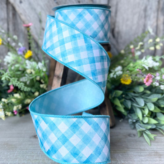 2.5" Blue Watercolor Wired Ribbon by Farrisilk, Blue Fuchsia Ribbon, Spring Ribbon