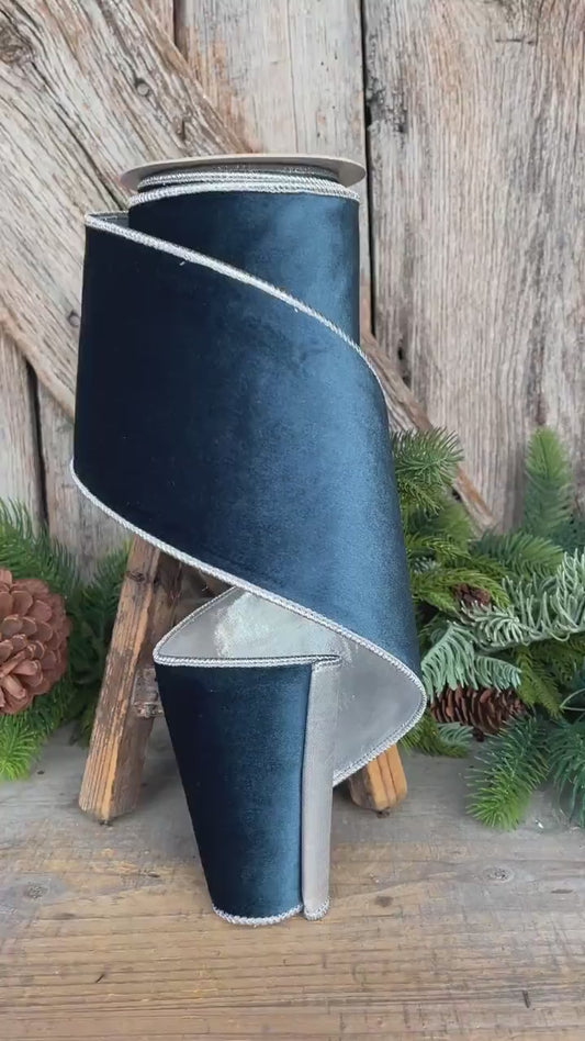 4" Dark Blue Velvet Ribbon, Christmas Ribbon
