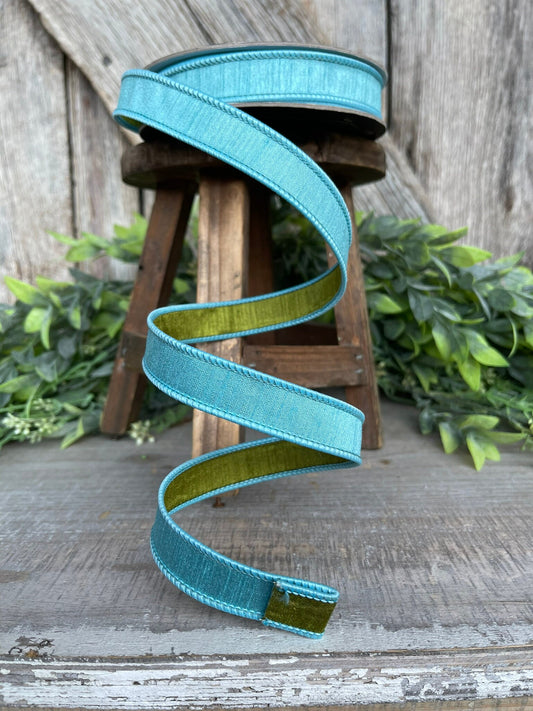 3/4” Light Blue Green Ribbon, Farrisilk ribbon, wired ribbon