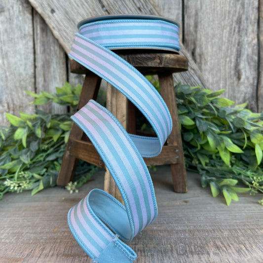 1" Light Blue Newport Stripes, Farrisilk ribbon, Blue Stripe RIbbon