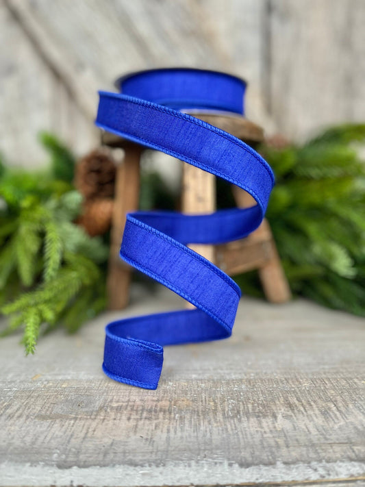 1” Royal Blue Dupion Ribbon, Farrisilk ribbon, wired ribbon