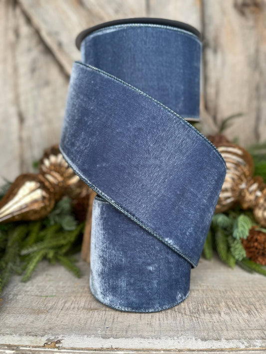 4” Steel Blue Velvet Ribbon, Velvet ribbon, Christmas Ribbon