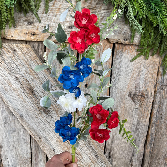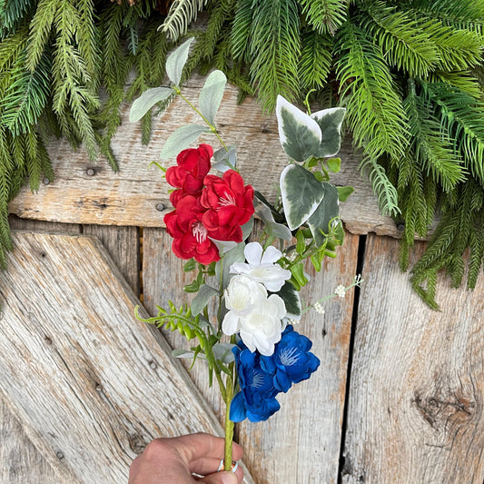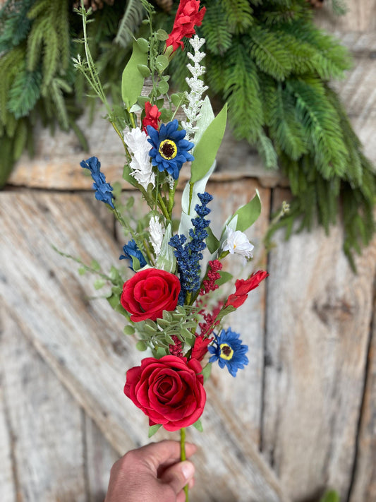 24" Patriotic Top Hat Spray, Red White Blue Floral Spray, Patriotic Picks and Stems