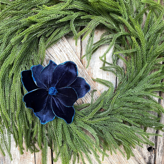 19" Navy Blue Magnolia, Christmas Magnolia Stem, Blue Christmas Magnolia
