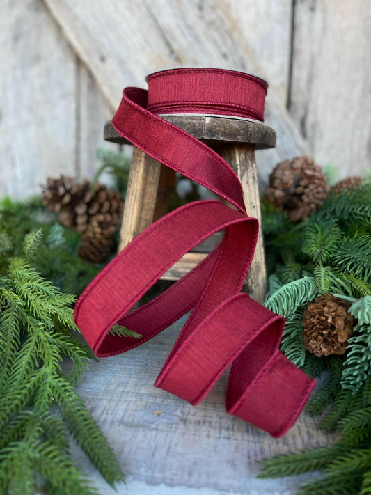 1" Burgundy Unwired Velvet Ribbon, Christmas Bow Ribbon, Maroon Velvet Ribbon