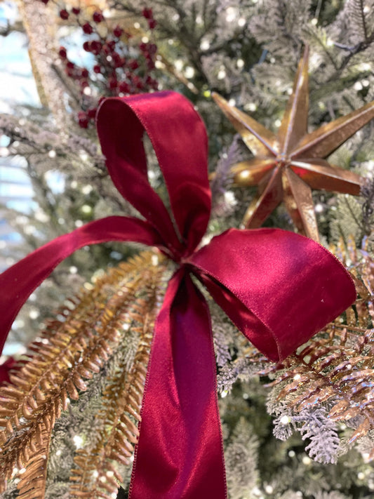 4" Wine Burgundy Satin Ribbon, Christmas Ribbon, Shimmer Satin Ribbon